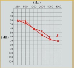 1、听力曲线呈现渐降型或陡降型,多以高频听力损失较重。