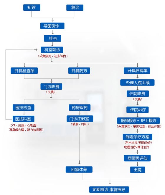 您所在的位置: 首页 > 医院简介 > 就医帮助 > 西安新城中大耳鼻喉医院诊疗流程