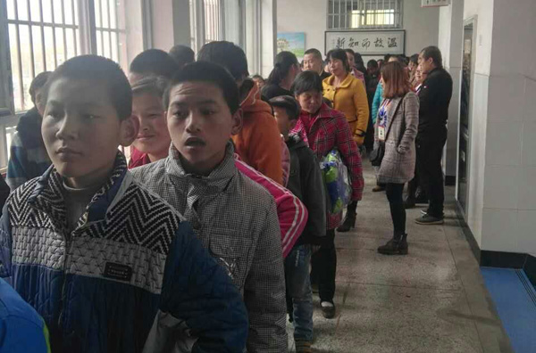 孩子们井然有序的排队等候体检