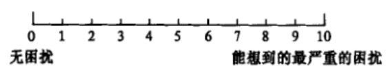 1.主观病情评估:采用视觉模拟量表(VAS)。按照VAS评分将病情分为(图1):轻度0—3;中度>3~7;重度>7—10。若VAS>5,则表示患者的生活质量受到影响。