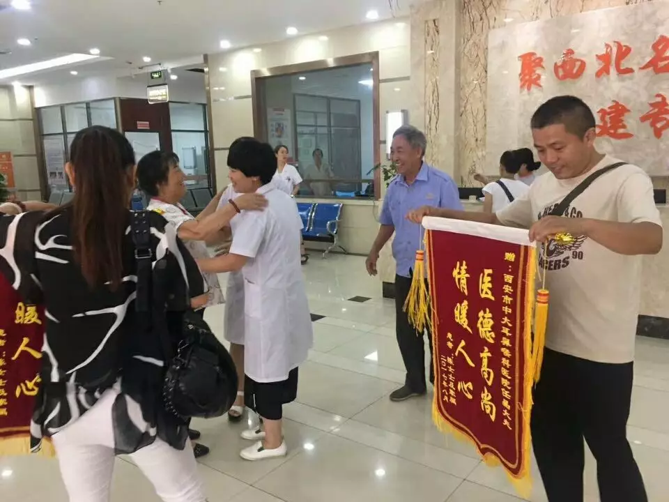 ▲耳聋患者张老汉在中大老年公益门诊中听力得到了良好的恢复,送来锦旗致谢